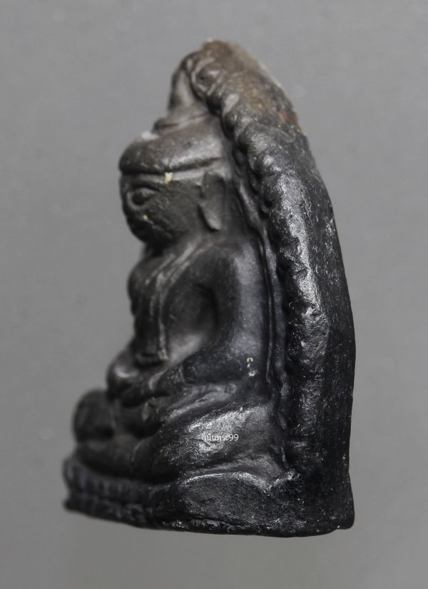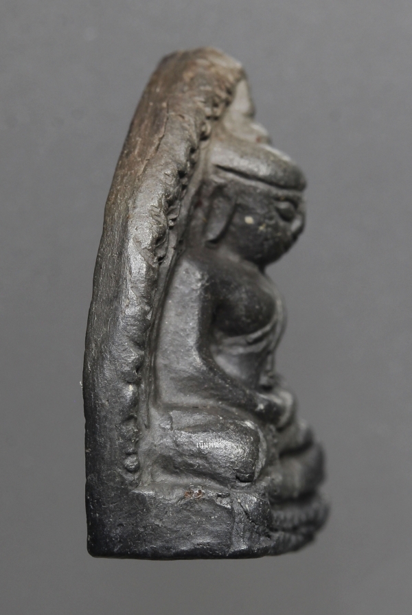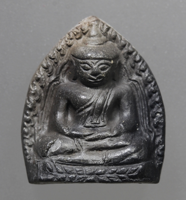 พระหลวงพ่อโต วัดชีปะขาวหาย พิมพ์เล็ก จ.พิษณุโลก พระหลวงพ่อโต หรือเรียกกันว่าแบบขอบข้างซุ้มลายกระกนกโค้ง เป็นพระหลวงพ่อโตที่มีขนาดเล็กยิ่ง เล็กกว่าของอยุธยา ด้วยขนาดขององค์พระกว้างประมาณ 1.9 ซม. สูงประมาณ 2.2 ซม องค์พระแบบสามเหลี่ยมมนโค้ง องค์พระพุทธปฏิมากรประทับนั่งปางสมาธิขัดราบบนฐานอาสนะบัว 2 ชั้น ขอบข้างเป็นลายซุ้ม กนกซึ่งมีความชัดลึกงดงามทีเดียว รวมทั้งรายละเอียดของพระพักตร์ พระเนตร พระนาสิก พระขนง ตลอดจนเส้นสังฆาฏิเด่นนูนชัดเจน พระเกศองค์พระเป็นแบบฝาละมี แบ่งเป็นชั้นชัดเจน ข้างองค์พระเป็นเส้นลวด 2 เส้น ด้านหลังองค์พระ เป็นแบบลายกาบหมาก เป็นส่วนใหญ่ ที่ด้านหลังเป็นรอยปาดเรียบ เรื่องประสบการณ์ เด่นมากทางด้านคงกระพันชาตรีและมหาอำนาจวาสนาเป็นเลิศ องค์นี้ได้เนื้อดำหาพบยากสภาพถือว่ายังสวยดูง่าย ราคาเบาๆ |